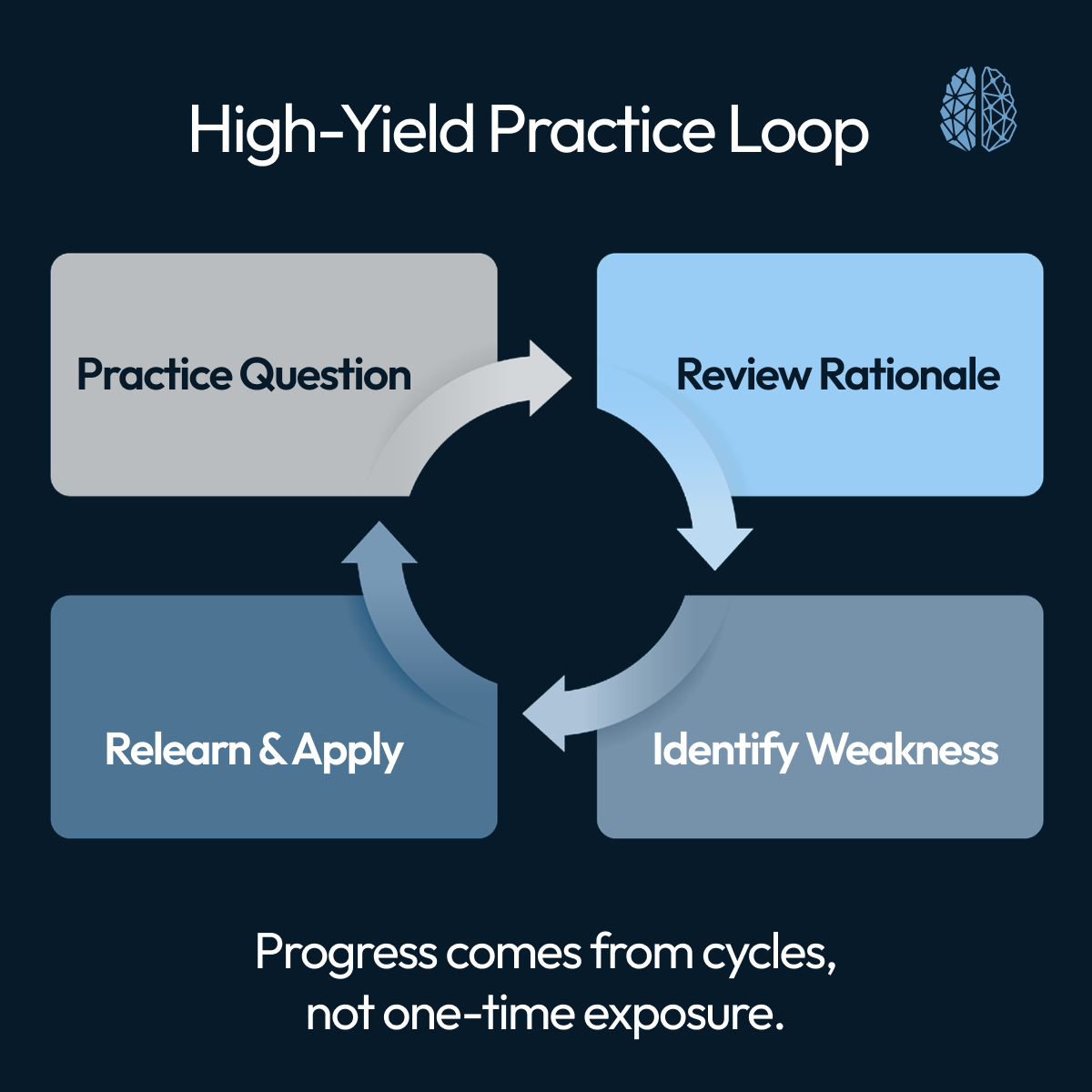 When you train yourself to apply knowledge instead of simply recalling it, you don’t just become a better test-taker. You become a better clinician. You think more clearly, make better decisions, and approach complex situations with greater confidence.